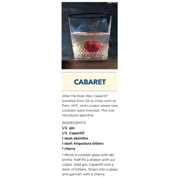 For decades this unique Aperitif inspired barmen all over the world. Then, in the 1930s, the company that made it disappeared, and with it the product as well as the recipe. Subsequently, mixologists and bartenders from all over the world referred to the defunct Caperitif as the “ghost ingredient.” Fast forward almost 100 years to when Adi Badenhorst finally revived this ghost ingredient with the launch of the new Caperitif. A high quality white wine base (made on Kalmoesfontein) is the starting point. Then, a neutral grape-derived alcohol spirit is added to increase the alcohol to at least 16% ABV. Once this level of alcohol is achieved, at least 45 different ingredients are added. These ingredients include a variety of fruits, garden herbs, spices, a bouquet of various flowers, some roots and barks for bitterness as well as the distinctive and unique Fynbos. Fynbos is the collective name for the 8,500 different species of plants that grow in the Cape Floral Region. Many of these plants have been harvested and utilized for medicinal purposes for thousands of years and are intensely aromatic, imparting a unique aroma to the Caperitif. A portion of each batch is matured in old oak casks and blended back into the “fresh” Caperitif to add even more complexity to the final product. Caperitif can be enjoyed like most aperitifs or vermouths—simply with ice, or in many different cocktails.